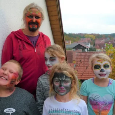 Natürlich ist auch Mottoschminken zu bestimmten Themen und Anlässen möglich, zum Beispiel zu Halloween oder Weihnachten.