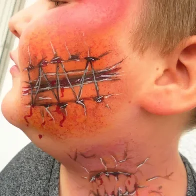 An Halloween ist Kinderschminken eine beliebte Attraktion, ein besonderes Highlight ist dabei auch das Schminken von Verletzungen und Wunden.
